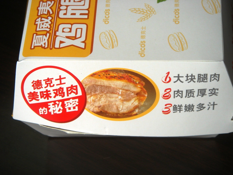 DICOSはチキンがメインのファーストフードで、中国ではケンタッキー、マクド