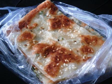 これだけだと物足りないので朝によく食べる葱油饼も。